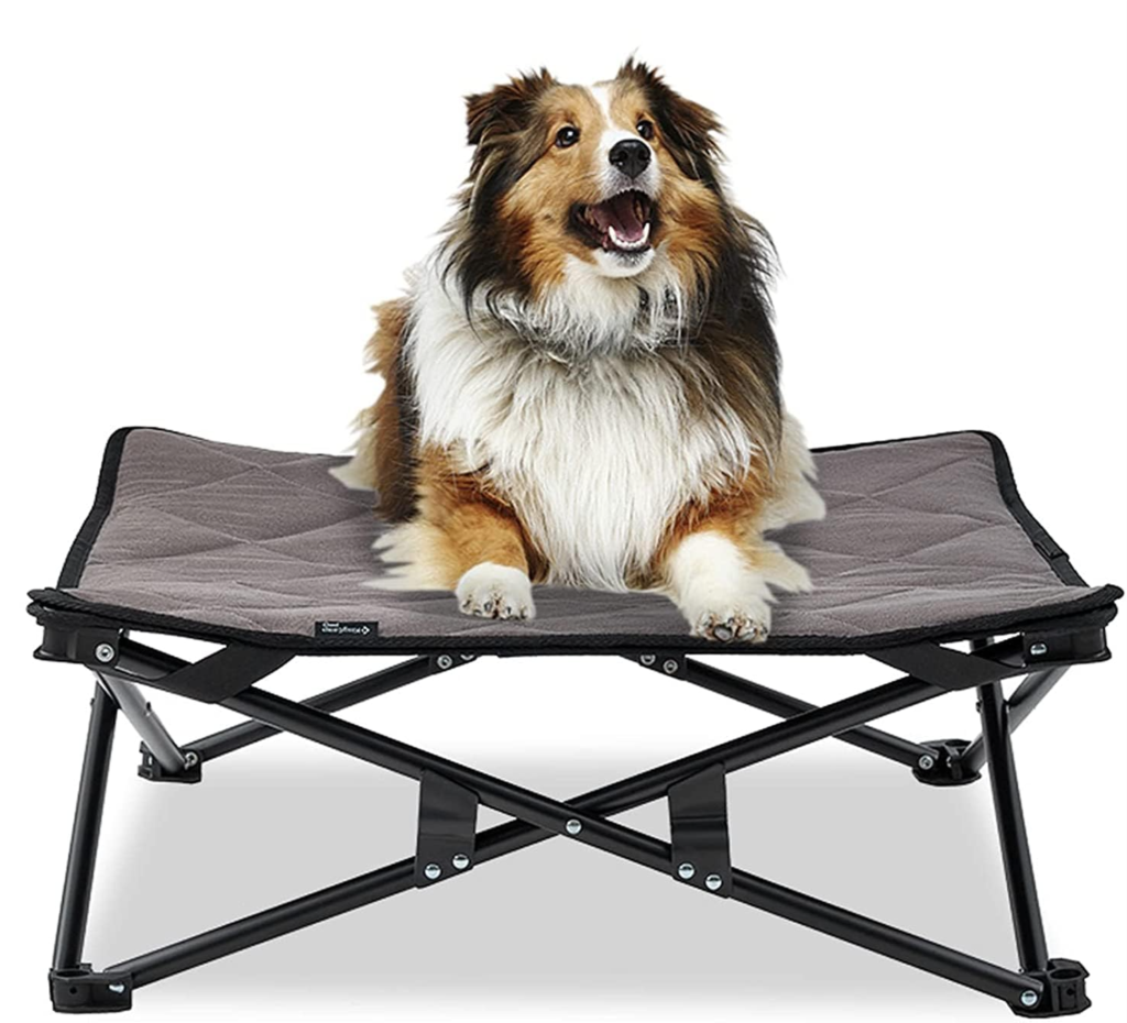キャンプで寝るときは、「コット」というアウトドア専用のベッドを使用します。犬用の「ドッグコット」は地面から20cmほど高さがあるため、愛犬を地面の冷えや害虫から守ってくれます。