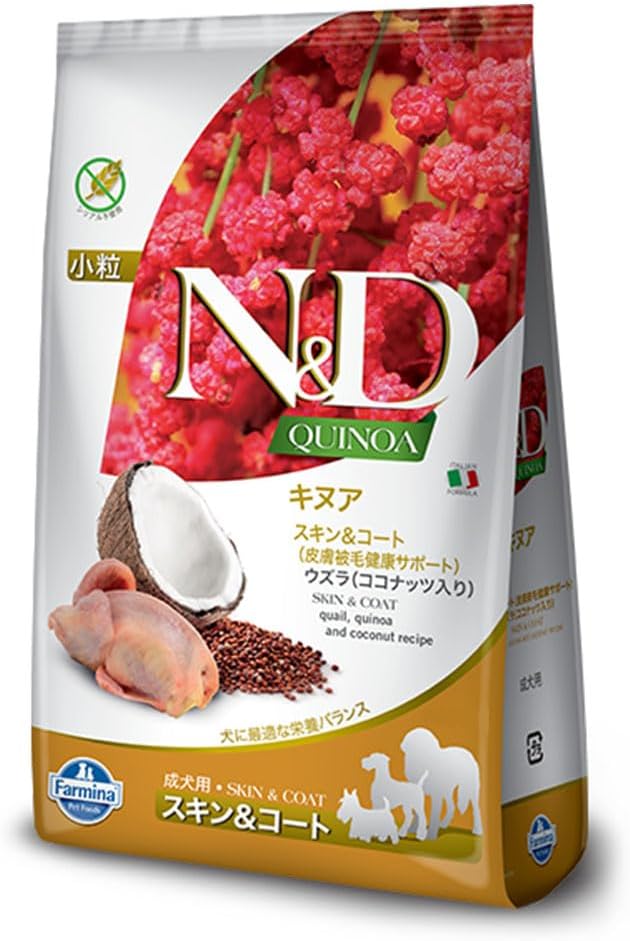 N&D(ナチュラル&デリシャス) スキンコート ウズラ、キヌア、ココナッツ&ウコン 小型成犬用 800g