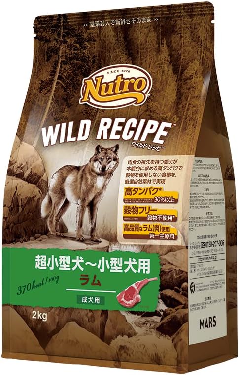Nutro ワイルドレシピ 超小型犬~小型犬用 グレインフリー 成犬用 ラム 2kg ドライフード 総合栄養食
