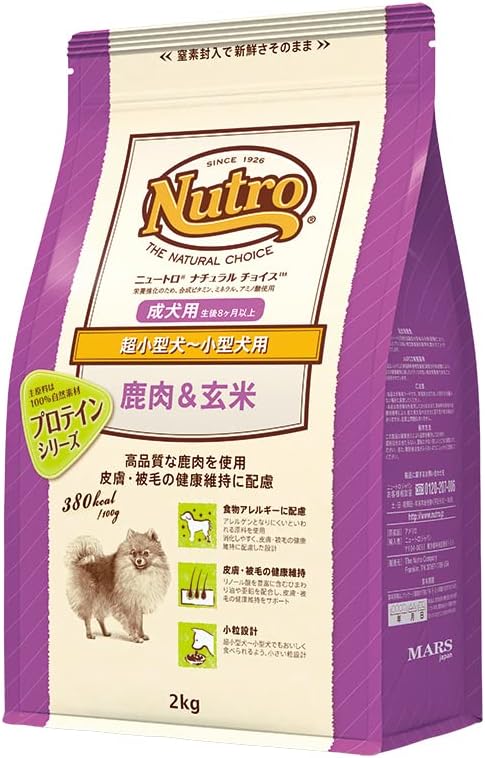 Nutro ナチュラルチョイス 超小型犬~小型犬用 成犬用 生後8ヶ月〜 鹿肉& 玄米 2kg 小粒 総合栄養食