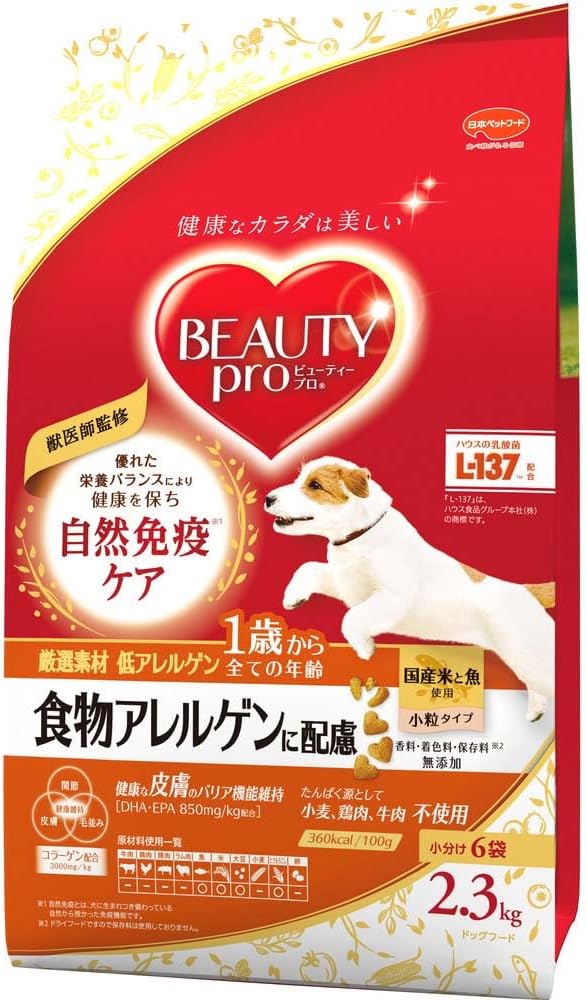 ビューティープロ ドッグフード 食物アレルゲンに配慮 1歳から 国産米・魚 2.3kg