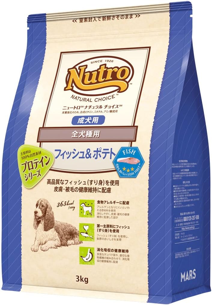 Nutro ナチュラルチョイス 全犬種用 成犬用 フィッシュ&ポテト 3kg ドライフード 総合栄養食