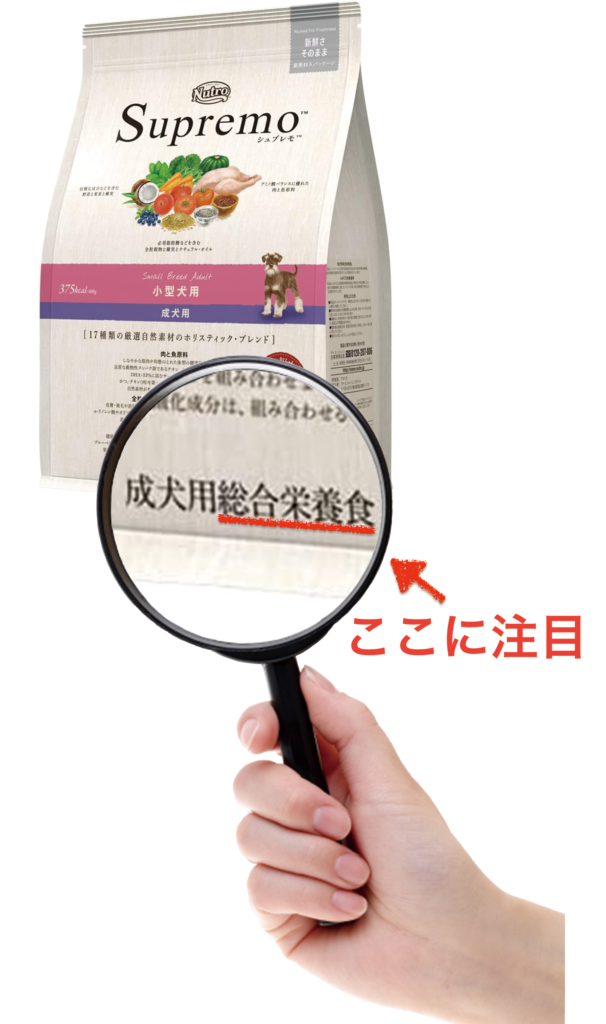 「総合栄養食」以外のもの、例えば「栄養補完食」「間食」「副食」などと記載されているものは、必要な栄養素がまかなえない可能性があるので注意しましょう。