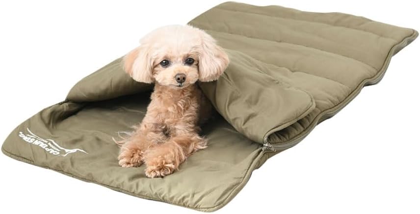 犬用シュラフ(寝袋)は犬の身体を覆ってくれるので断熱性があり、急な雨で犬が濡れるのを防ぎます。